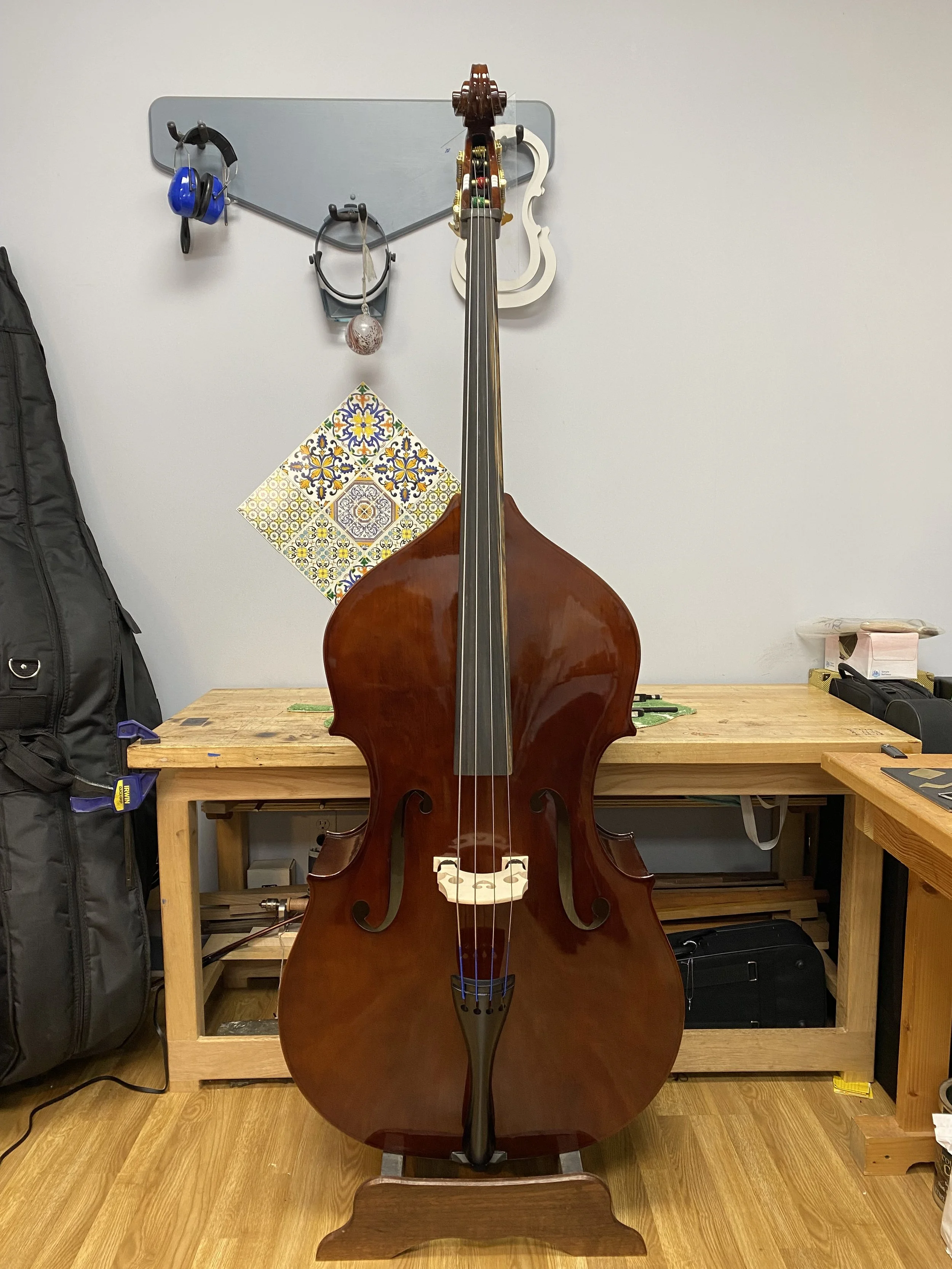 Set-up in house. Fingerboard dressed to professional musician specificity. Nut/action low. Sound post set for easy playability and excellent sound.